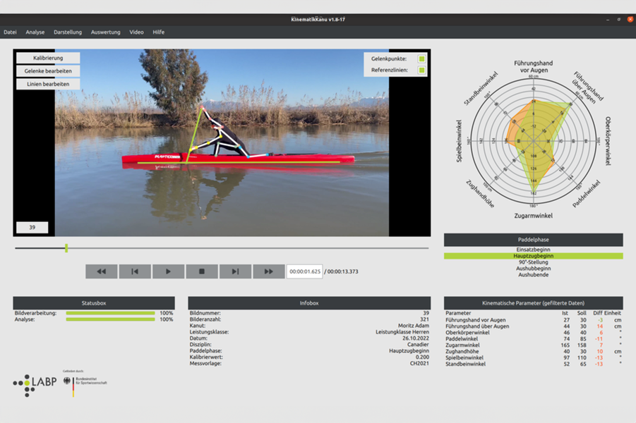 Das Vorhaben baut auf der bereits entwickelten Software zur automatisierten, videobasierten Technikanalyse im Spitzensportbereich auf, die im Rahmen des vom BISp geförderten Anwendungsprojekts KInematikKanu entstanden ist. Im Rahmen dieses Projekts wird diese Lösung auf den Anwendungsbereich des bundeseinheitlichen Landeskadertests adaptiert.
